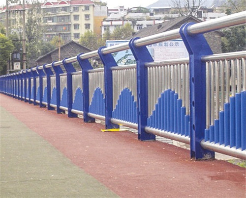 橋梁景觀防撞護欄采用鍍鋅鋼制立柱,鍍鋅立柱表面靜電噴涂處理,橫管采用不銹鋼/碳鋼復合管, 是由不銹鋼(SUS304)與質地良好的碳素結構鋼(Q195-Q235、SPCC)等雙金屬,經高科技同步復合焊接而成,產品兼具不銹鋼卓越美觀的華麗外表,抗腐蝕性能和碳 素鋼結構強度大的諸多突出優點,與純不銹鋼管相比,節約了成本,增加了強度。 是純不銹鋼管的升級換代產品.真正實現了裝飾與負荷的完美結合。其目的 是為了防止失控車輛越出橋外,具有使車輛不能突破、下穿、翻越橋梁以及美化 橋梁建筑的功能。 采用插接式安裝,簡便快捷,固定牢靠。具有白、藍、紅、綠等多種顏色,色彩艷麗、裝飾性強,可與其他材料護欄組合使用。在高溫下使用不褪色、耐腐蝕、 高強度、不生銹,美觀典雅、不褪色、不老化。 橋梁河道安全欄桿通過連接螺栓連接,用連接件或者焊接直接與立柱卡接、螺栓 連接和連接件連接,可邊安裝邊調整現場尺寸;組裝結構實行標準化生產, 通過沖壓、減板、沖孔、鍍鋅等設計,表面防銹處理全部在工廠完成,只需到馬 路、公路,鄉鎮國道公路、橋梁、河道現場組裝即可。