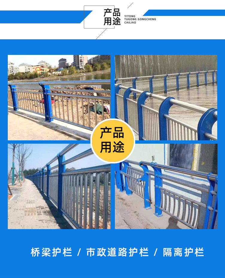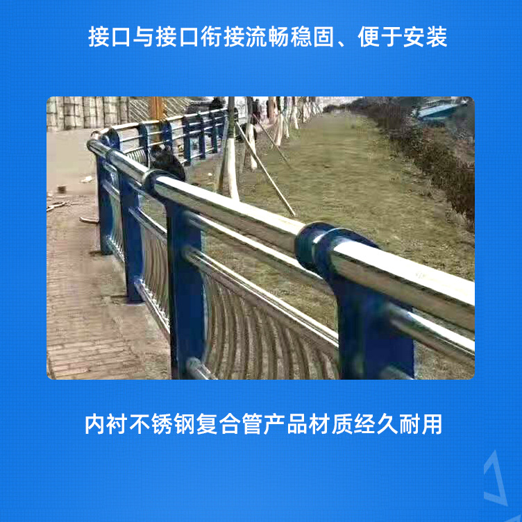 不銹鋼復合管護欄由不銹鋼和碳鋼兩種金屬材料與新材料的無損壓成的復合,不銹鋼的耐腐蝕性和優良的外觀漂亮,和鋼的抗彎強度和抗沖擊性能好。隨著國家節能和普遍原則。不銹鋼復合管護欄在2002 Gb / t18704-2002國家標準正式頒布,從材料的質量,檢驗等都有一套嚴格規范的管理,由于外形美觀,價格低廉的優點,已被廣泛應用于橋梁護欄,裝飾,汽車配件,輸送輥,紡織機械零部件和其他領域。